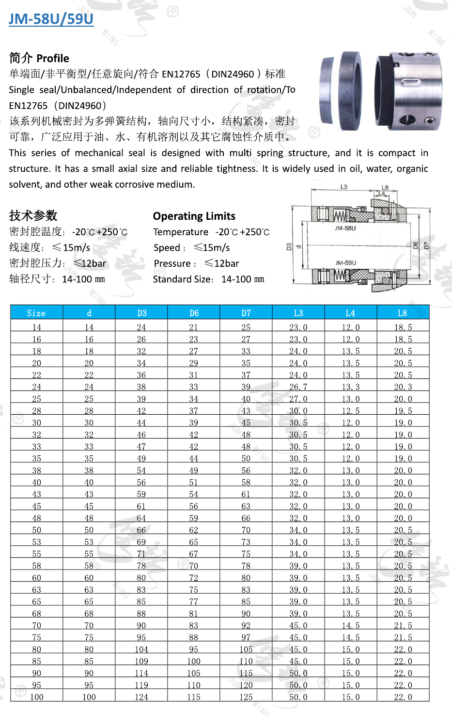 該系列機械密封為多彈簧結(jié)構(gòu),軸向尺寸小,結(jié)構(gòu)緊湊,密封可靠,廣泛應用于油、水、有機溶劑以及其它腐蝕性介質(zhì)中。