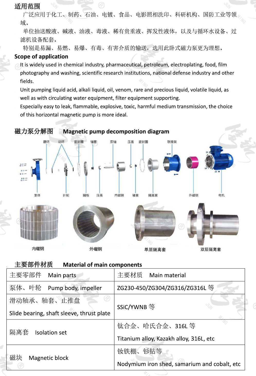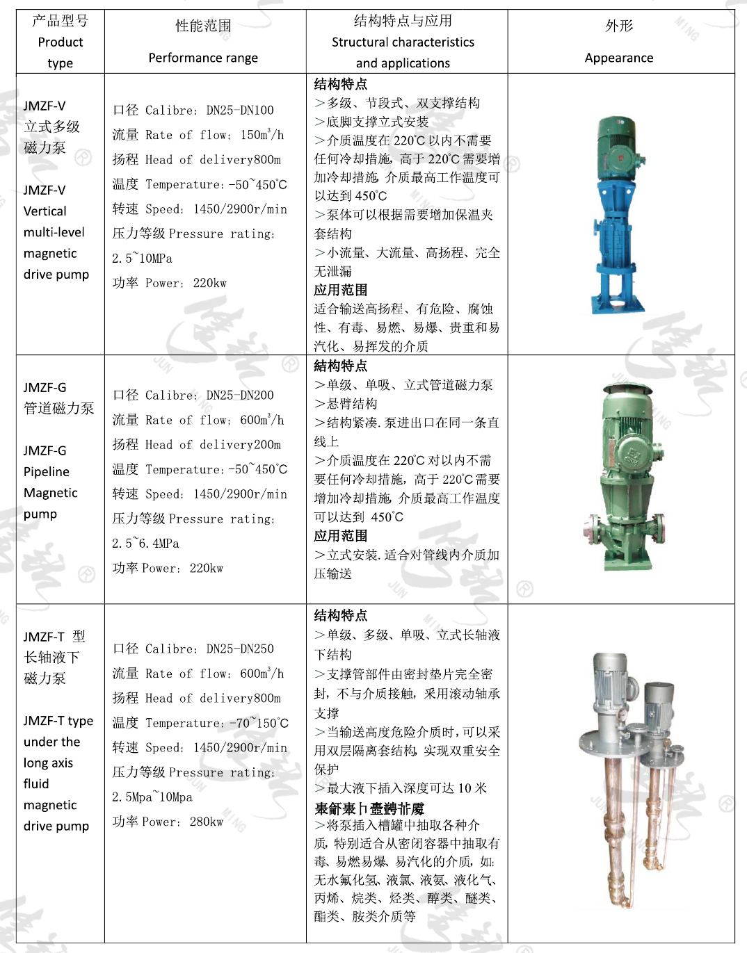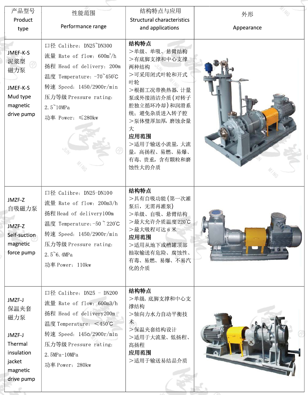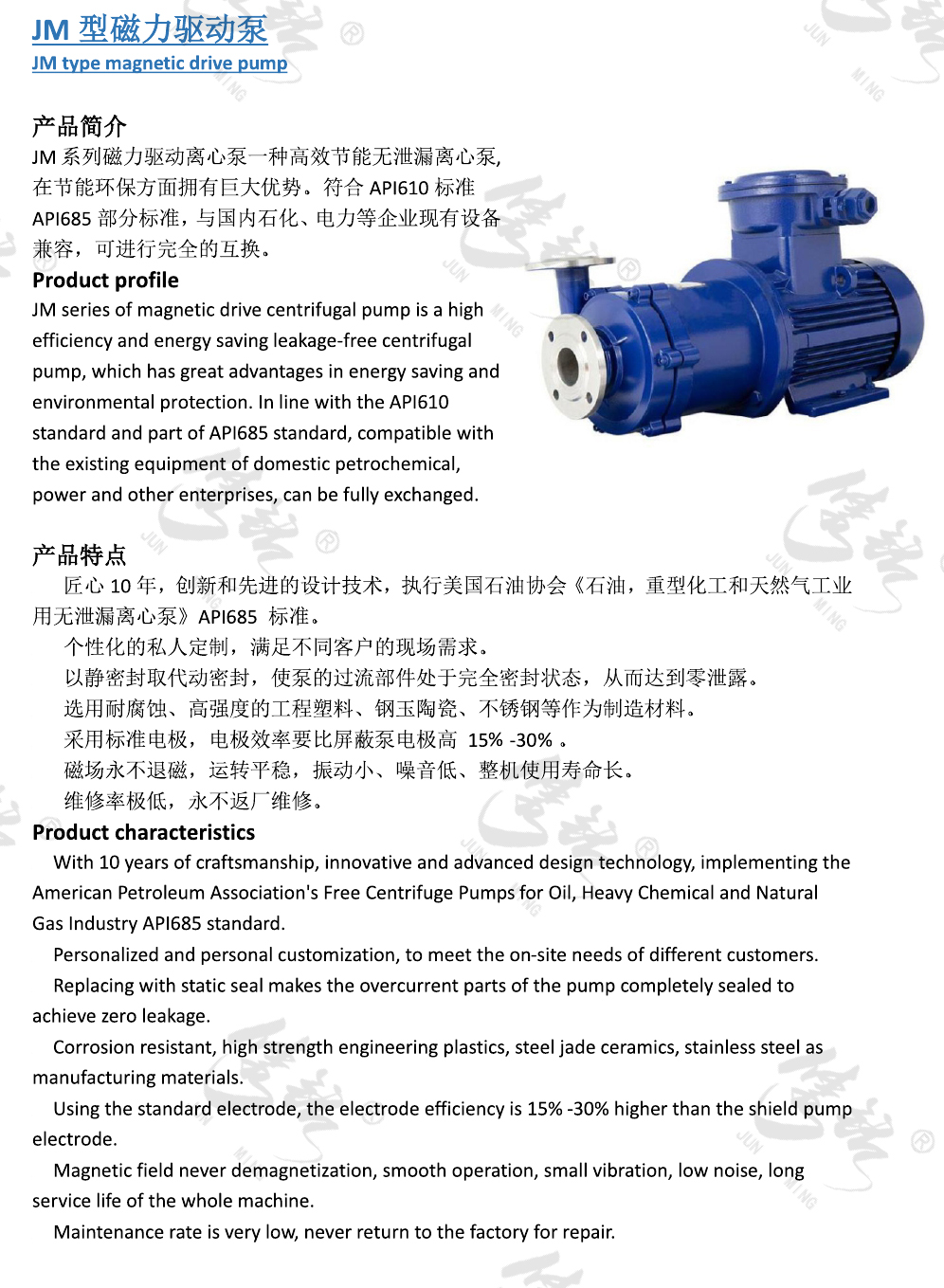 JM系列磁力驅(qū)動離心泵一種高效節(jié)能無泄漏離心泵, 在節(jié)能環(huán)保方面擁有巨大優(yōu)勢。符合API610標(biāo)準(zhǔn)API685部分標(biāo)準(zhǔn),與國內(nèi)石化、電力等企業(yè)現(xiàn)有設(shè)備兼容,可進(jìn)行完全的互換。